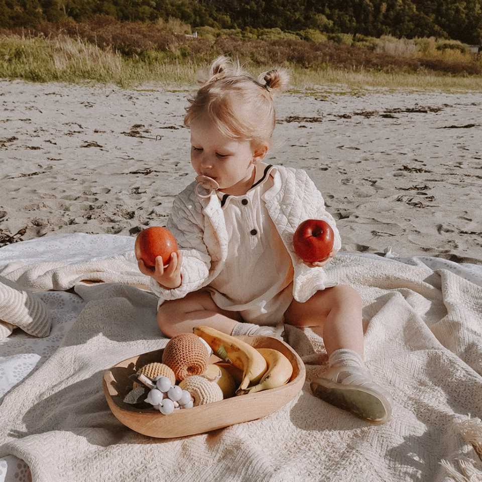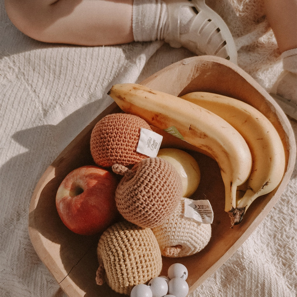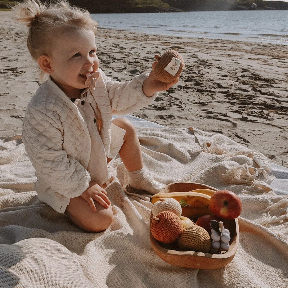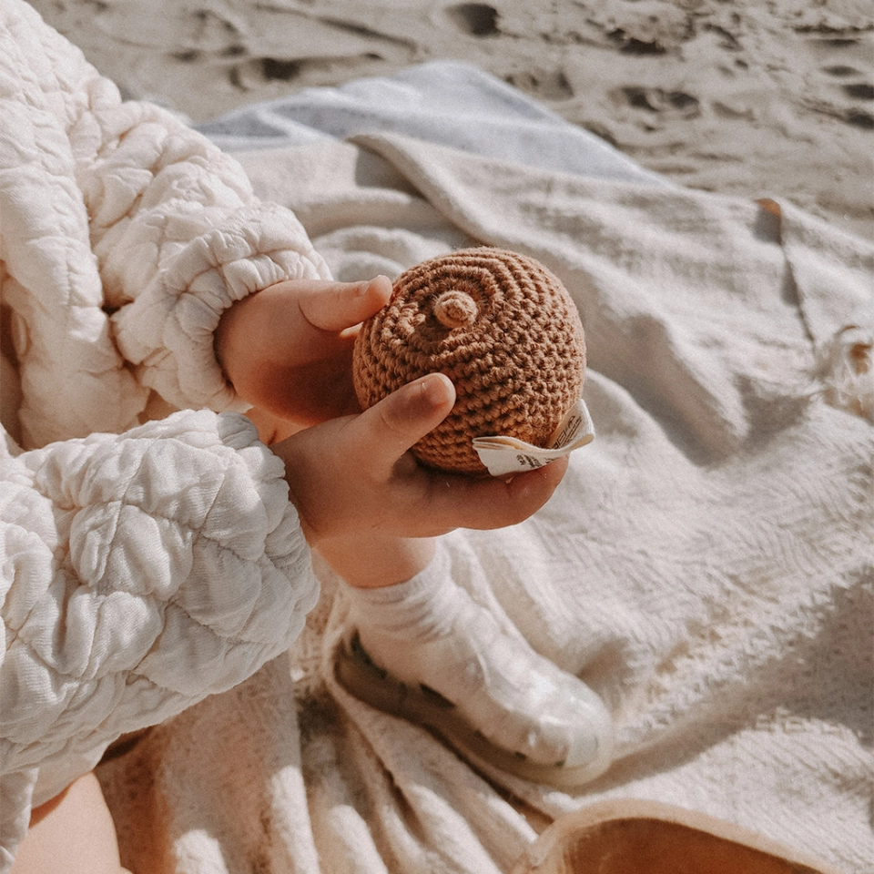 Disse små ranglene i rolige, naturlige toner inviterer babyen til å utforske former, farger og lyder på en trygg og sanselig måte. De er lette å gripe, myke å holde og fine å kose med – en liten favoritt fra første stund.